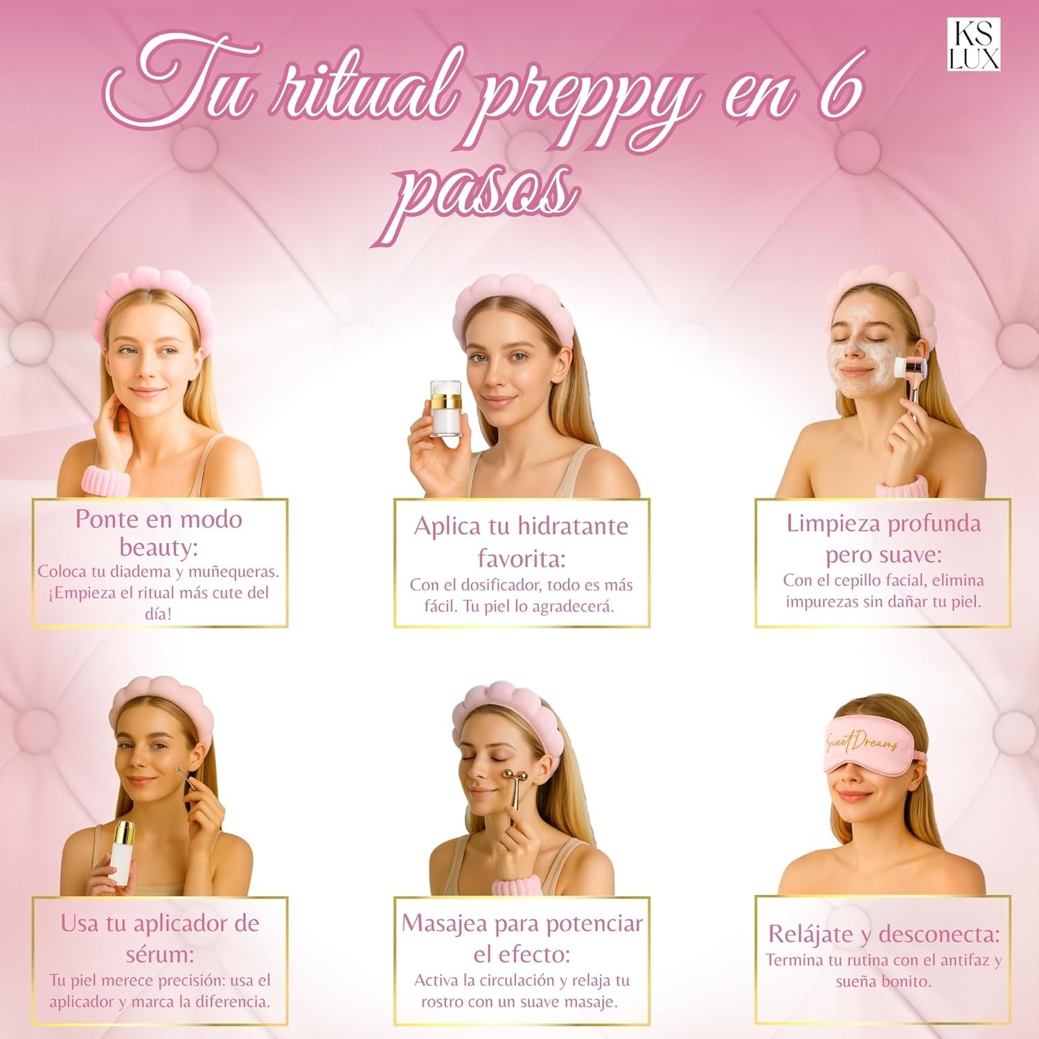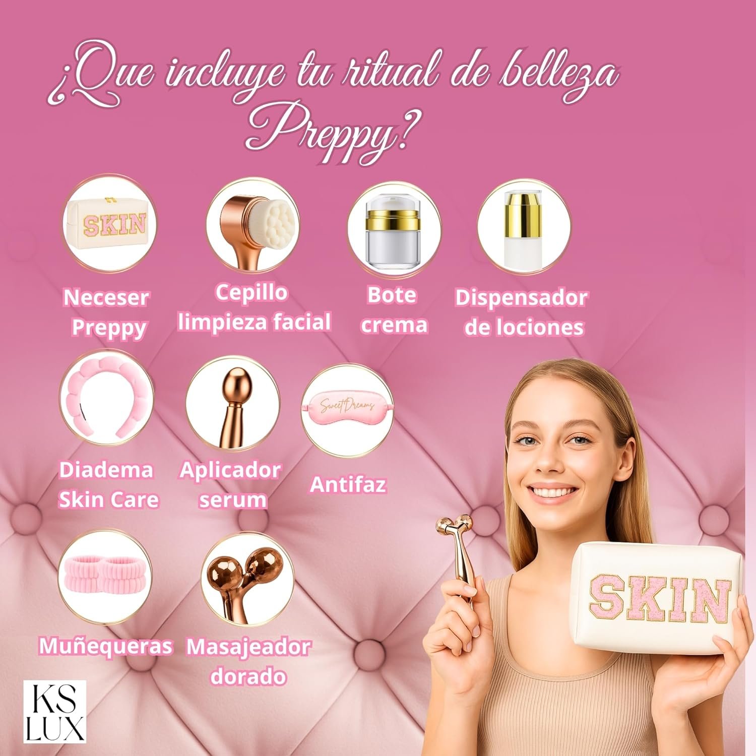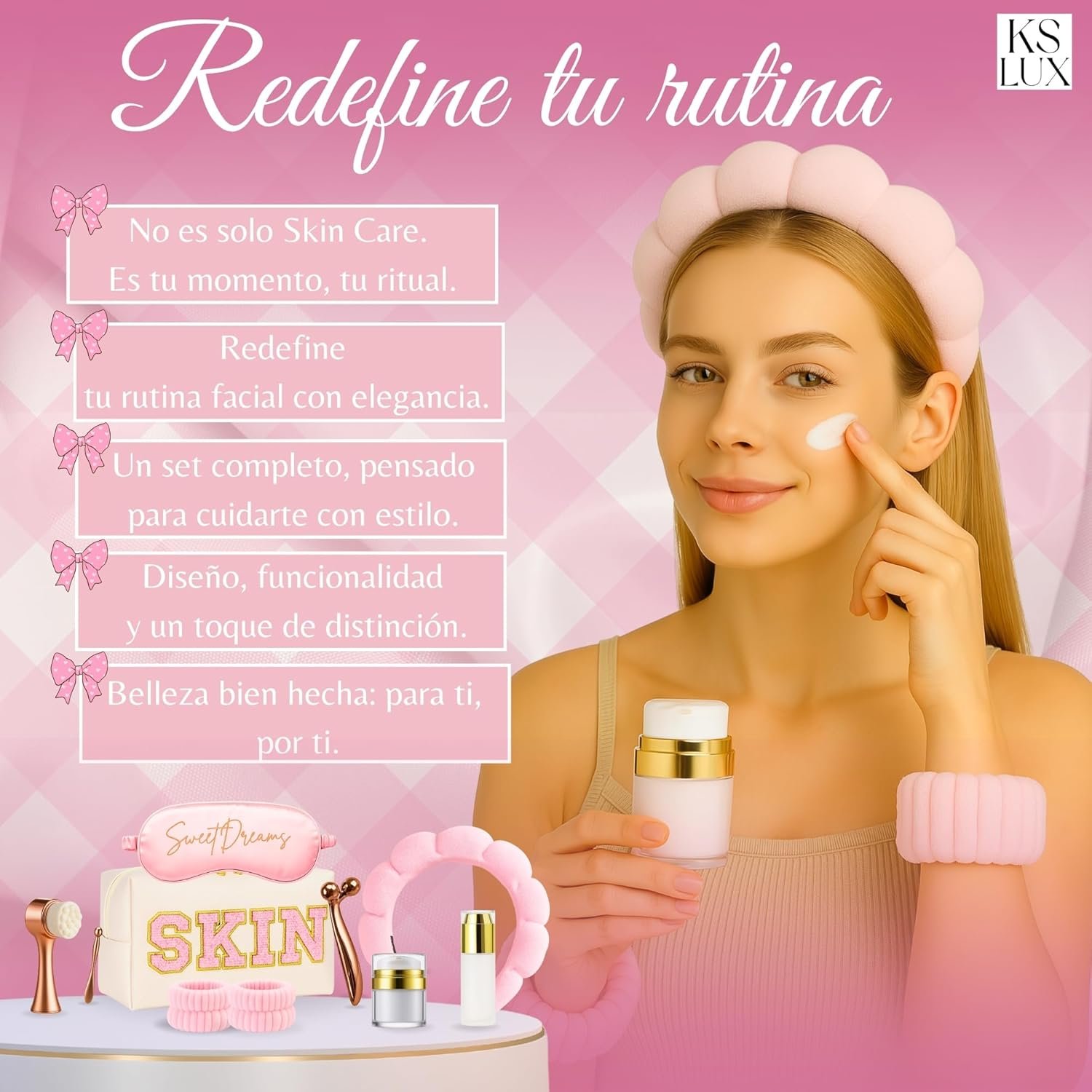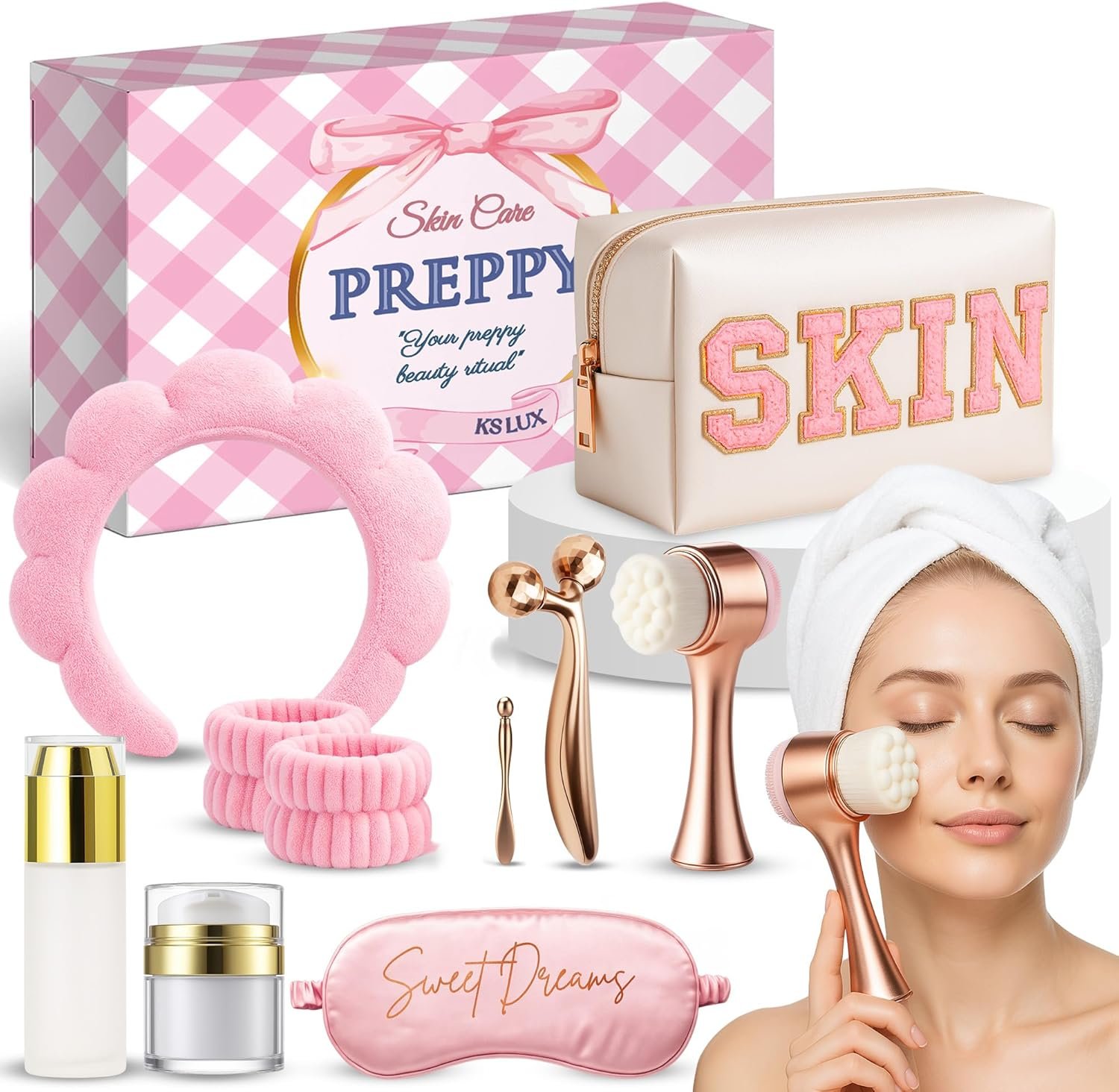 Resume el contenido del producto de manera muy amigable y sobre todo enfocado a las mujeres en 250 palabras sobre Skincare Kit, Skin Care, Pack Gift Women, Original Gifts for Women, Facial Cleaning, Beauty, Korean Skincare, Korean Skin Care, Gift Ideas, Preppy, editando el texto y subrayando las características clave del árticuloPrecio en Amazon: €22.80 - €21.80