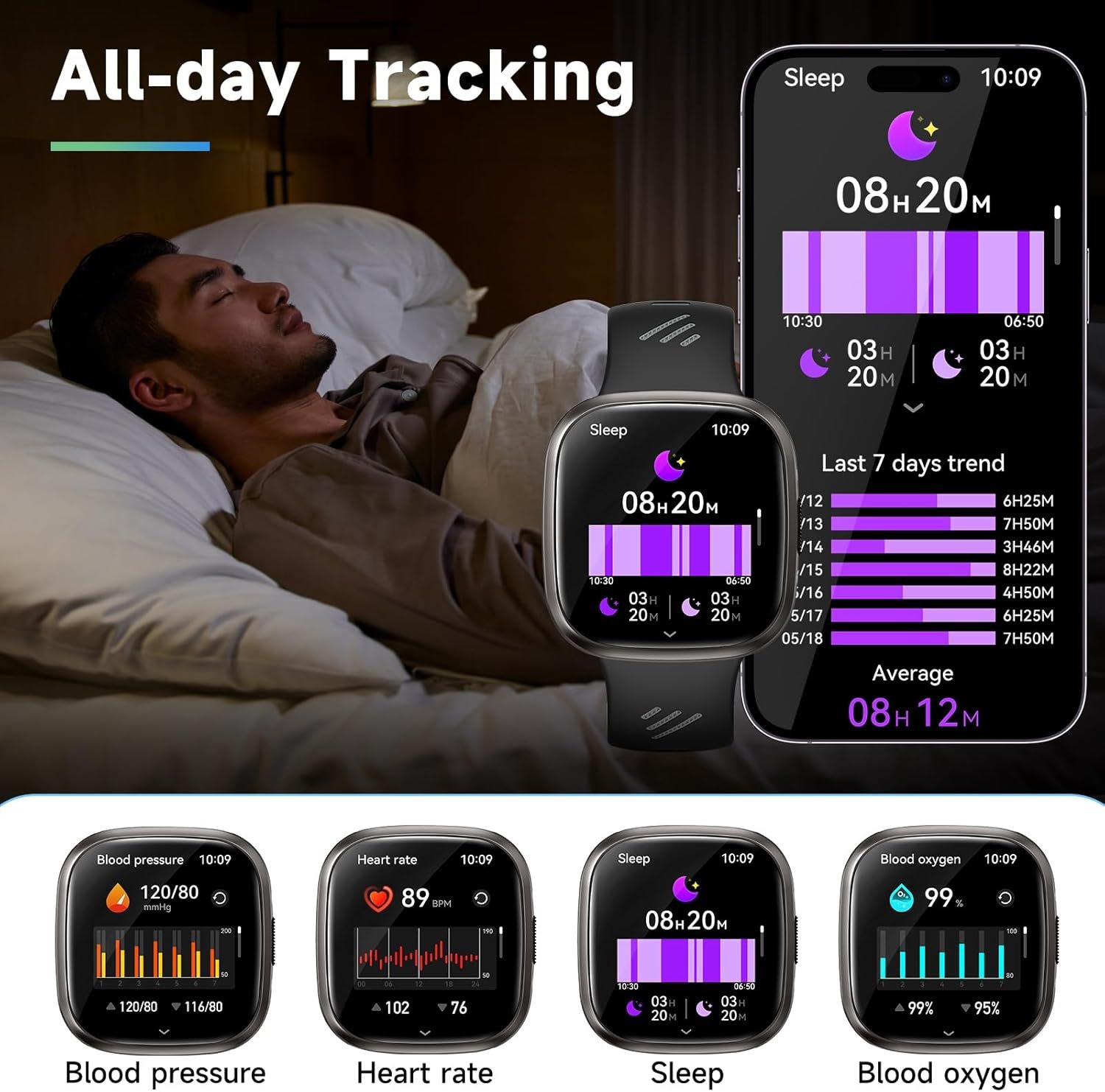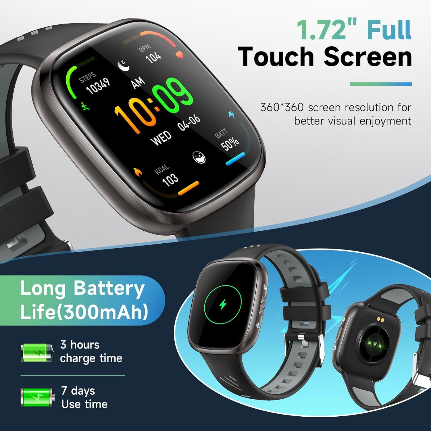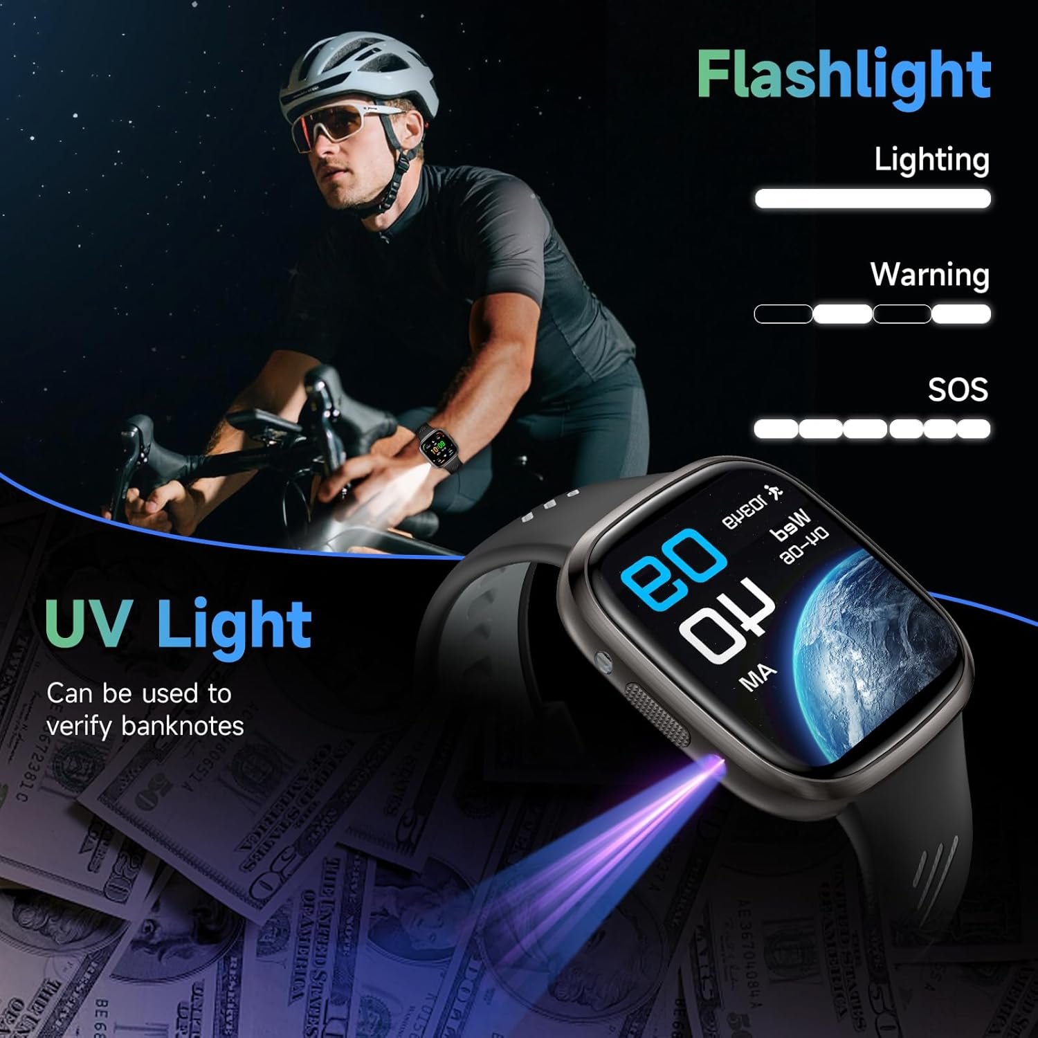 Resume el contenido del producto de manera muy amigable y sobre todo enfocado al fitness y la salud en 250 palabras sobre Smart Watch with Blood Pressure/HRV, 1.72″ AMOLED Smartwatch with Oximeter, Sleep Monitor, Flashlight, UV Light for Android iOS, editando el texto y subrayando las características clave del articuloPrecio en Amazon: €39.99 (as of Oct 19, 2025 15:02:36 UTC – Detalles del precio)