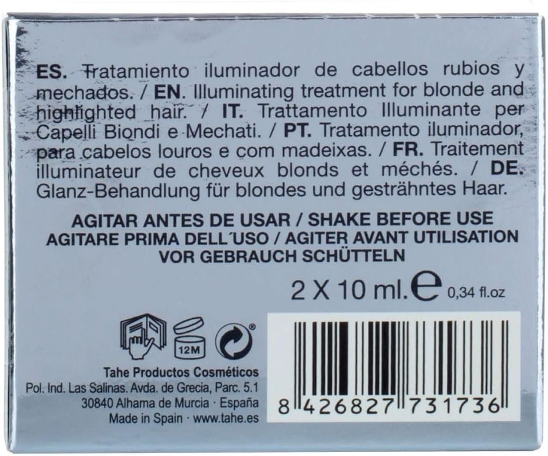 Resume el contenido del producto de manera muy amigable y sobre todo enfocado a las mujeres en 250 palabras sobre Tahe Infusion Gold Radiance Brightening Treatment for Blonde and Wick Hair with Liquid Gold and Pure Keratin, 2 x 10 ml, editando el texto y subrayando las características clave del árticuloPrecio en Amazon: €10.50 (as of Mar 30, 2026 03:03:33 UTC – Detalles del precio)