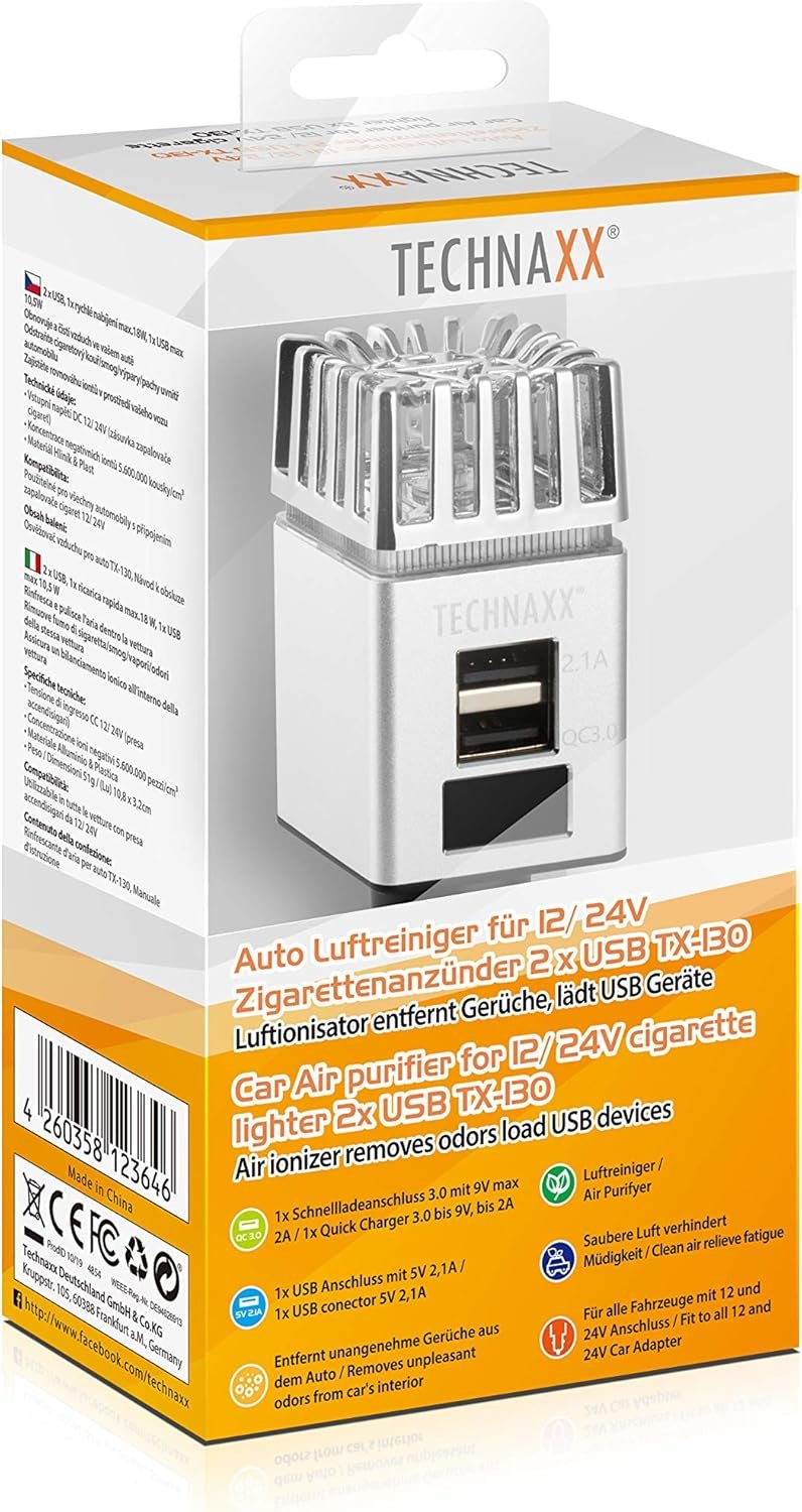 #Technaxx #Car #Air #Purifier #1224V #USB #Quick #Charger #Ion #Balance #Eliminates #Cigarette #Smoke #Pet #Odor #Food #Odor #Portable #Air #Freshener #TX130