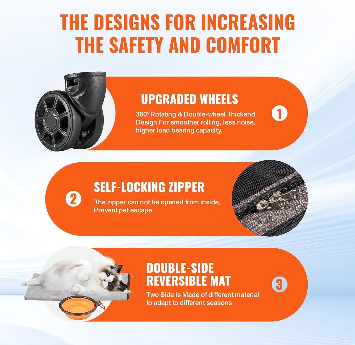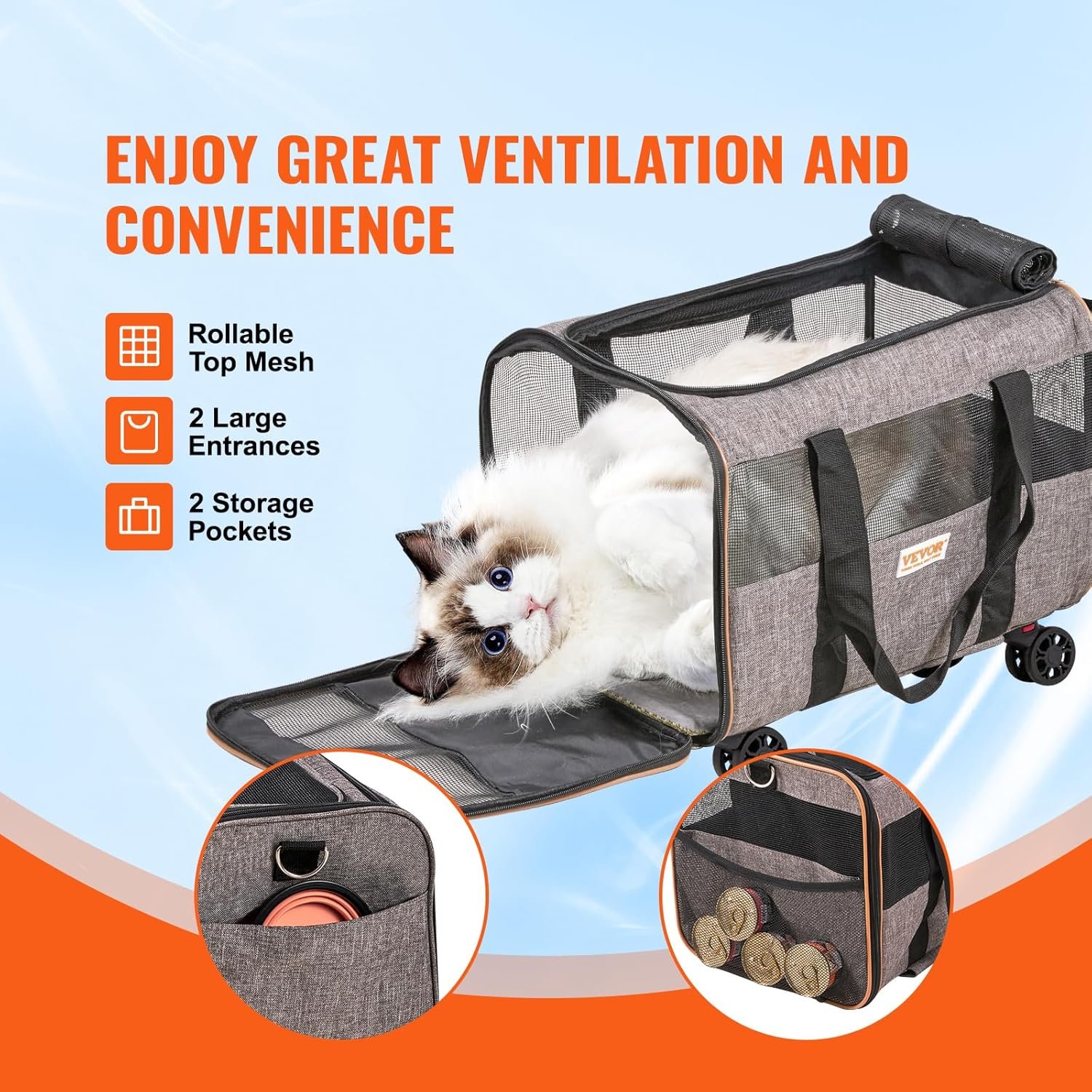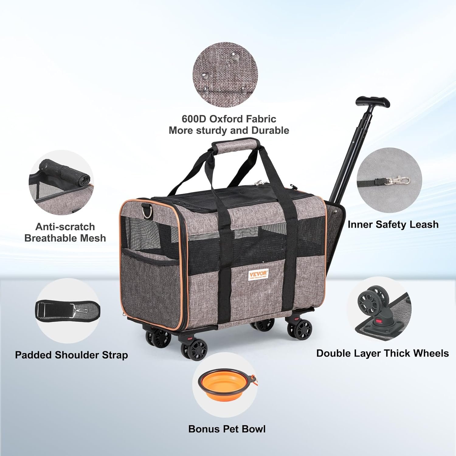 Resume el contenido del producto de manera muy amigable y sobre todo enfocado al cuidado de mascotas y la salud de ellas en 250 palabras sobre VEVOR Pet Carrier with Wheels Load 9.9 kg Luggage for Cats 46 x 30 x 30 cm Pet Carrier with Telescopic Handle Shoulder Strap Zip with Self-Locking for Dogs, Grey, editando el texto y subrayando las características clave del articuloPrecio en Amazon: €50.99 (as of Dec 15, 2025 15:42:15 UTC – Detalles del precio)