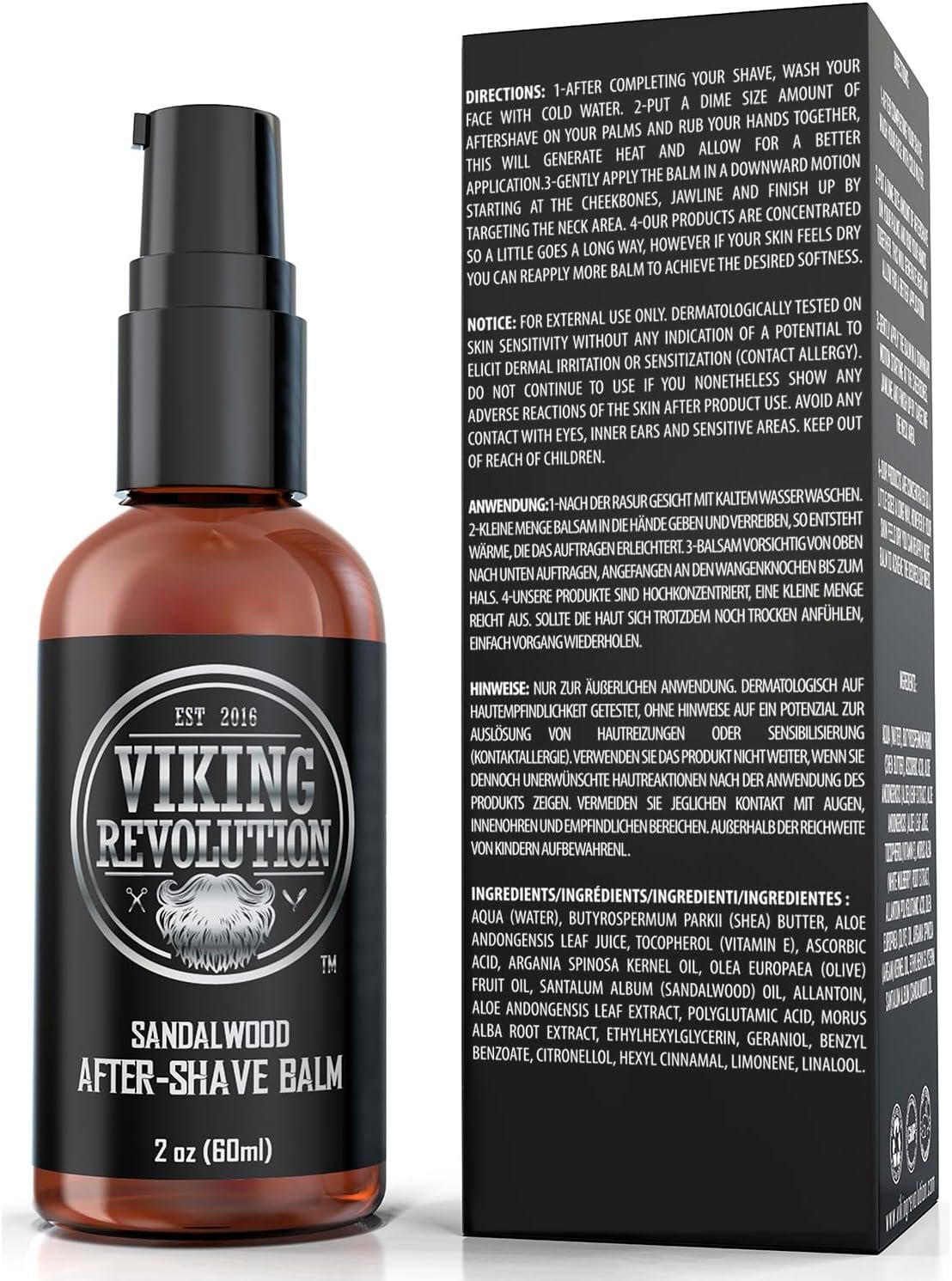 Resume el contenido del producto de manera muy amigable y sobre todo enfocado a los hombres en 250 palabras sobre Viking Revolution – Men’s After Shave Balm – Soothes and Hydrates Skin After Shaving – Eliminates Blade Irritation for a Silky Smooth Finish – Sandalwood Scent – 60ml, editando el texto y subrayando las características clave del árticuloPrecio en Amazon: €67.36 - €9.99 (as of Sep 28, 2025 10:49:52 UTC – Detalles del precio)