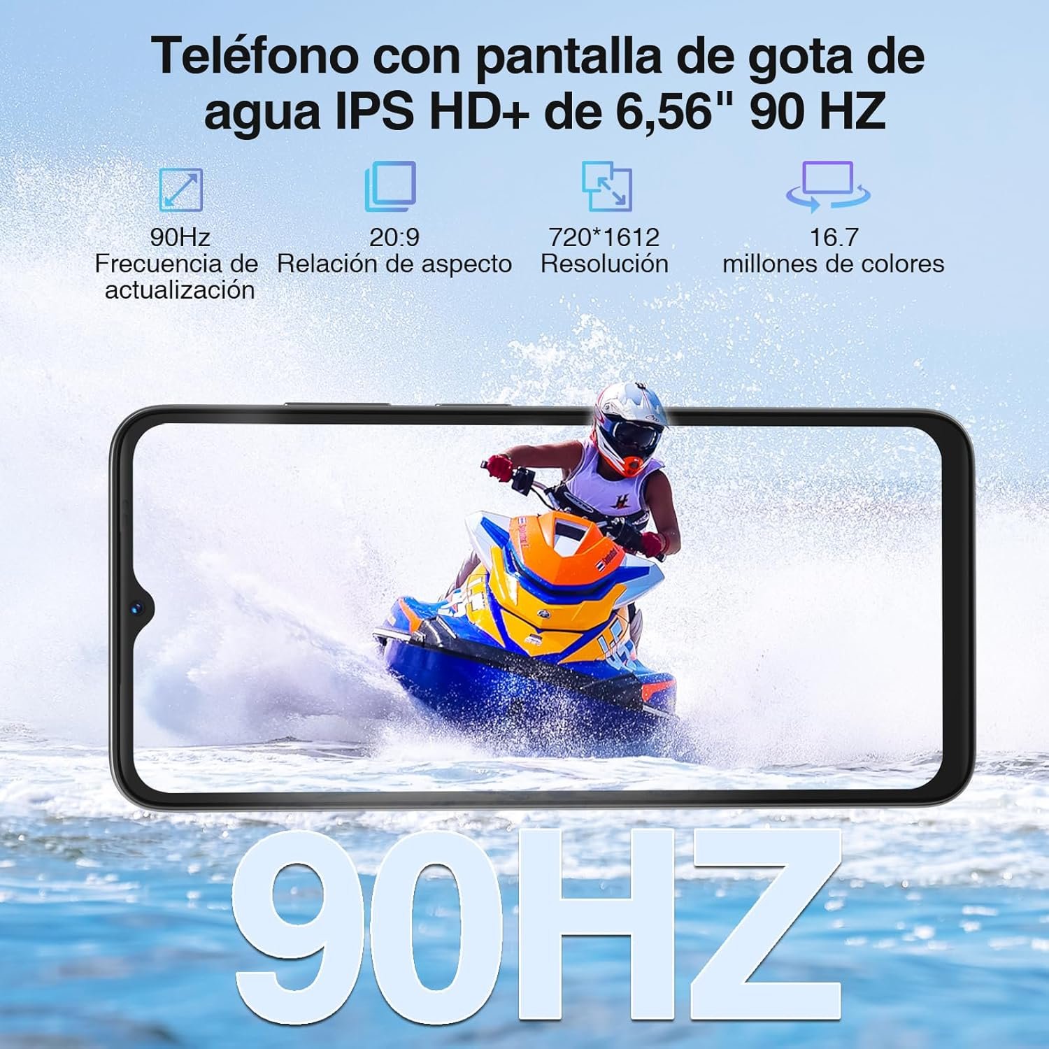 El DOOGEE N55 Plus es un smartphone de gama media que combina especificaciones técnicas avanzadas con un diseño accesible. Presenta una pantalla de 6.56 pulgadas HD+ con una frecuencia de actualización de 90Hz, lo que asegura una experiencia visual suave y fluida. Funciona con Android 14, optimizando su rendimiento para las últimas aplicaciones y funcionalidades del sistema operativo.