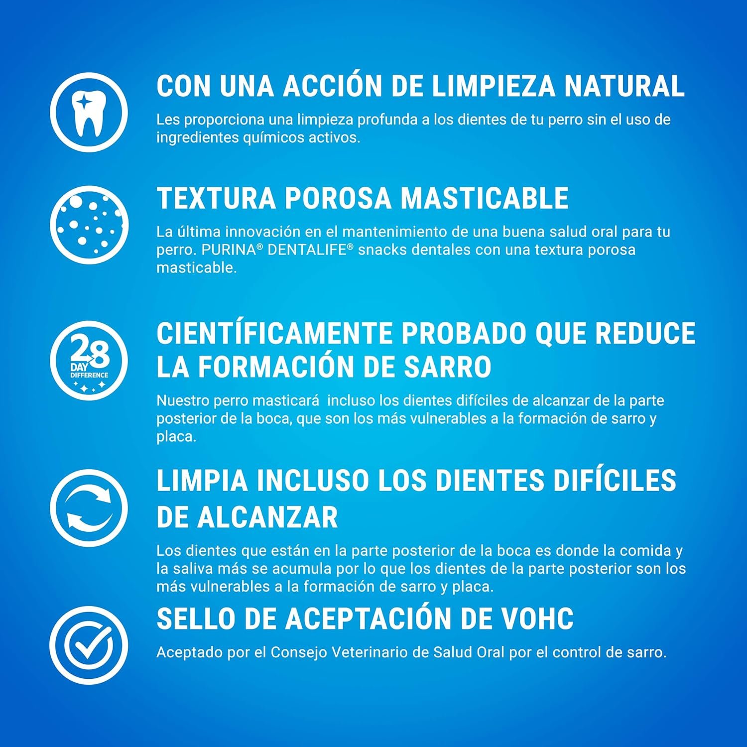 ¡Claro! Aquí tienes un resumen amigable para Purina Dentalife Daily Oral Care Large, enfocado en el cuidado y la salud de tus peludos amigos.